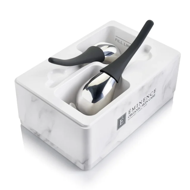 Refresh tired, puffy morning skin with at-home cryotherapy. The cooling touch of these two stainless steel spoons, designed to provide either a warm or cooling facial massage, soothe redness, inflammation and boost blood circulation. Used cold, the cryo-thermal sculpting tool naturally triggers vasoconstriction, which helps move lymphatic fluid and decrease swelling. Cryo-thermal sculpting tool, $98, eminenceorganics.com