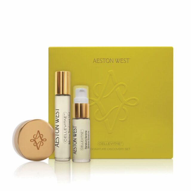 “I can’t travel without my skin nourishing essentials—cleanse, treat, repair—and I spray my face with Aeston West’s mist of French seawater, botanicals and fungi all day long.” Aeston West Signature discovery set, aestonwest.com