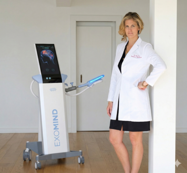 The best part about Exomind is that it has a sleek design, unlike the other TMS machines, and it has reduced treatment time. Instead of months, patients often feel improvements within two to six sessions. It’s like a jump start for your brain—it can cause neuroplastic changes without medication. It is incredibly exciting for me to be able to offer this to patients.